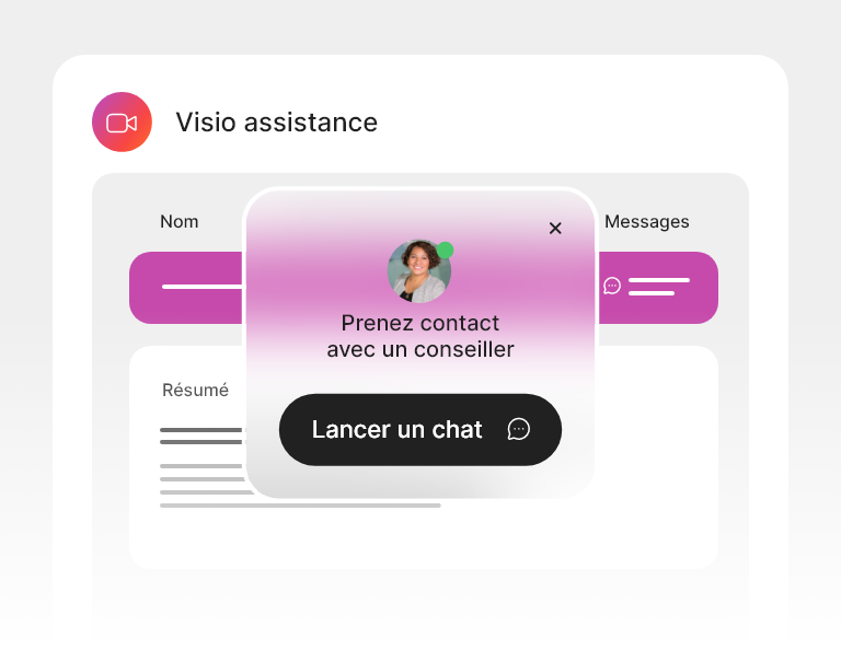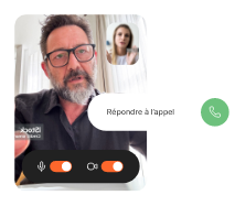 En un clic depuis une invitation envoyée par vos équipes, votre client est mis en relation en visio avec un conseiller. Aucune installation n’est requise de son côté.